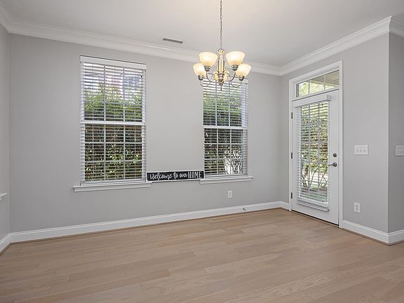 This move-in ready West Cary end-unit townhome is the perfect blend of style, comfort, and functionality. With 3 bedrooms, 2 1/2 baths, plus flex space, and a host of desirable features, this is the one! The resort-like amenities of Amberly offer tons of attractions including a lake, residents' club, 2 pools, fitness center, walking trails, and more! Light and bright! The fresh paint and engineered hardwood floors add an elegant touch, seamlessly connecting the rooms and creating a cohesive flow throughout the 2-level home. The central kitchen features a breakfast bar, pendant lighting and high-end SS appliances. In addition to plenty of storage the front flex room could be a home office, a cozy reading nook, or a playroom that offers endless possibilities. Upstairs offers plenty of space and an enormous primary suite with tray ceiling, huge walk-in closet, private balcony, tiled walk-in shower, garden tub and dual vanity. Home Warranty for one year included, low HOA, and a fantastic location minutes from RTP, RDU, YMCA, trails, parks and great medical & schools. Welcome home!