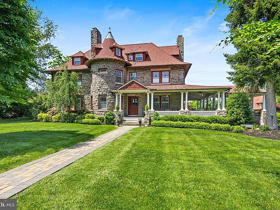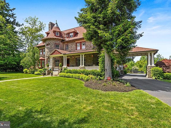 Louella Avenue, once known as "Bankers Row", boasts the stately homes of South Wayne, the type of which rarely come on the market. The architect was Francis A. Gugert who designed this magnificent c.1895 home and is one of the finest. This walk to Wayne location offers an open foyer with a stately butterfly staircase, 7 bedrooms, 5 full and 1 half bath, 4 fireplaces, a copper domed turret, a huge wrap around porch with a porte cochere, a large L-shaped pool with paver patio surround, a cupola topped carriage house converted to a 3 car garage plus parking for an additional 3 vehicles under the architecturally appropriate car port, and with a large unfinished second floor and original horse stalls in the back of the garage. The main floor features a large dining room, small den/parlor, large living room, butler's pantry, a beautiful kitchen with open concept family room, and a 1st floor laundry room equipped with a refrigerator and dishwasher. The family room has beautiful views of the backyard and a large eating area. The 2nd floor offers a modern primary suite and 3 additional bedrooms. The primary suite includes a large sitting room, oversized closet, and en suite bath. The 3rd floor offers 3 additional bedrooms, a laundry room, and full bath. This home is meticulously maintained by the owners, truly move-in ready, with upgraded electrical, plumbing, & windows. This is an outstanding opportunity to own a property within short walking distance to shops and restaurants, Radnor Township Middle School, the Wayne Train Station, and Library.