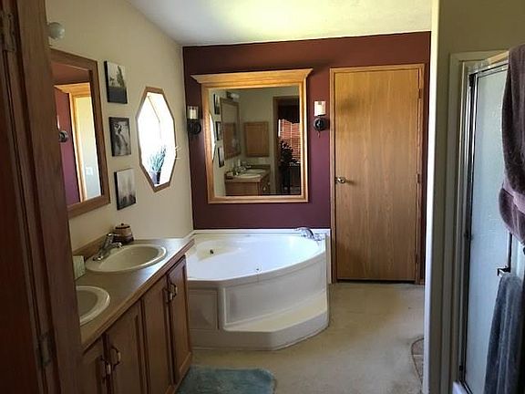 Large 4 bedroom and 2 bath home on 1.18 acres! 2,280 sq ft. all on one level. Master suite with big bathroom and lots of closet space. Great views all around! 2 detached garages and wrap around driveway for all of your toys.