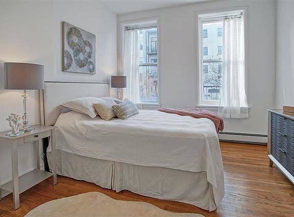 Charming 2BR/1BA condo with large bonus storage unit. The home boasts hardwood floors, Open layout, and bright sunny bedrooms. The Kitchen features granite countertops, S/S appliances, and breakfast bar. The building offers washer/dryer room in the basement and a large common backyard. Conveniently located near parks, shops, NYC transportation and all that Downtown Hoboken has to offer. Nearby parking is available for an additional fee.