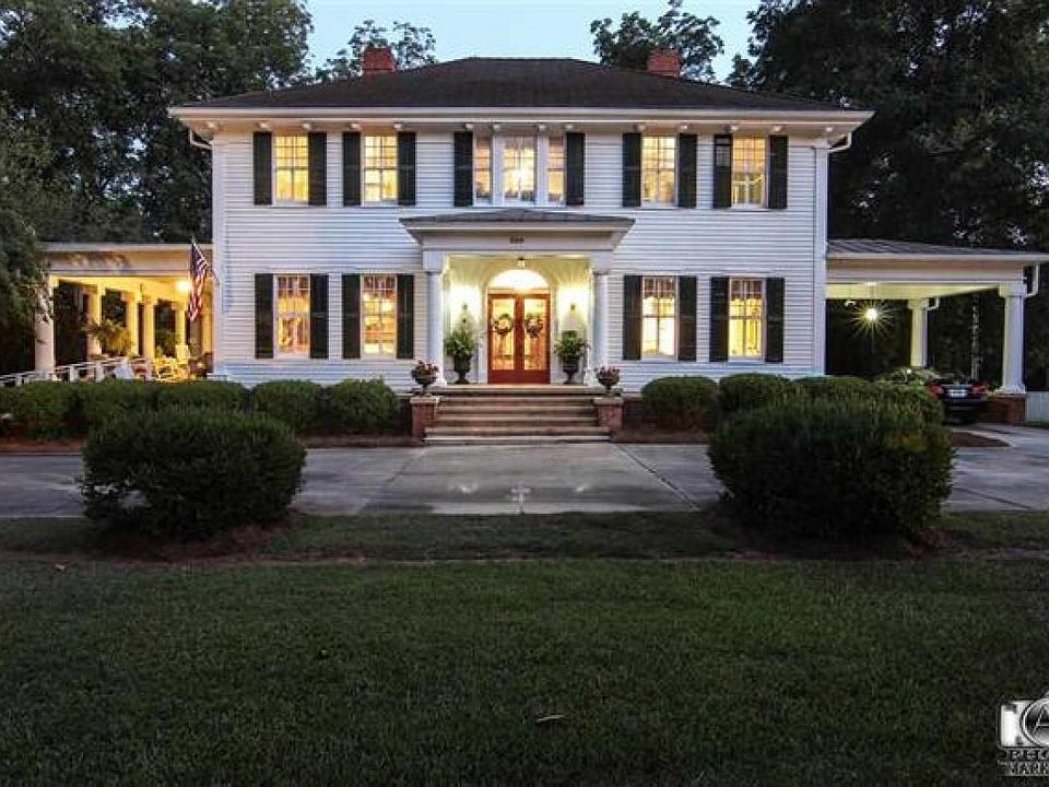 Fabulous Southern Home, 5195 sq. ft., c.1890 Georgian Colonial stands proud! Nestled amid beautiful shrubs, pecan trees & magnolias on 2.54 ac. Grand side porch for relaxing, deck w/gazebo for entertaining. Exquisite interior w/gorgeous wood floors, stain glass, family friendly kitchen, 2 laundry rooms, 3½ baths, 5 bedrooms, formal parlor & living, lovely staircase, wainscoting, detailed crown molding, formal dining, cozy den & sunroom, plantation shutters throughout & list goes on. Must see to appreciate!!