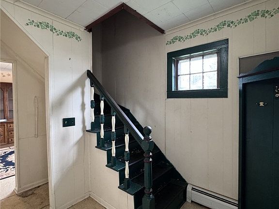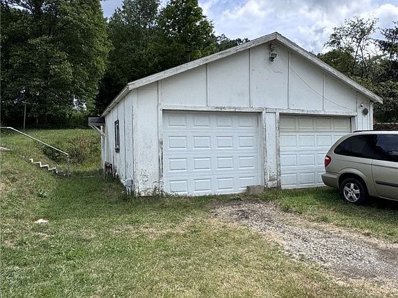 This two-story home presents an opportunity for those looking to invest in a property. The layout includes a convenient first-floor bedroom and bathroom, making it ideal for accessibility. Upstairs, you'll find three additional bedrooms. A detached two-car garage provides parking and extra storage. Please note, this property is a fixer-upper. The plumbing needs repaired.