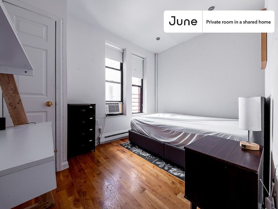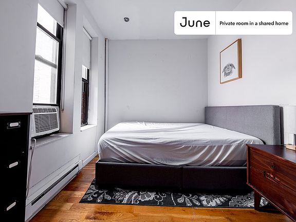 This Full room in Central Harlem is available on a 12 month lease or a flexible short term (31 to 364 days) lease. You pick your custom start and end date. Monthly rent rate is determined by furnishing preference, move-in date and move-out date. Speak to a June representative for recommendations on the best stay duration for the lowest rate.