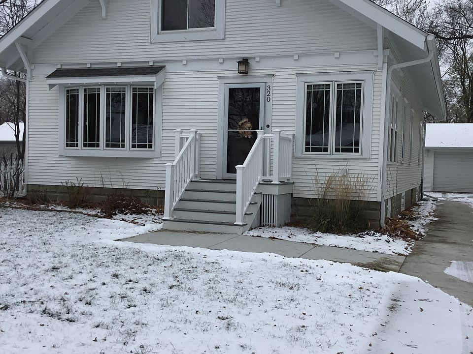 Old Time Charmer! Over 2000 sq ft, with high ceilings, newer windows, built-in buffet, wood flooring, fenced yard, and 3-car 1140 sq ft garage. 1 Blk to Pleasant Lake Beach, park accross street. Lots of Potential!!