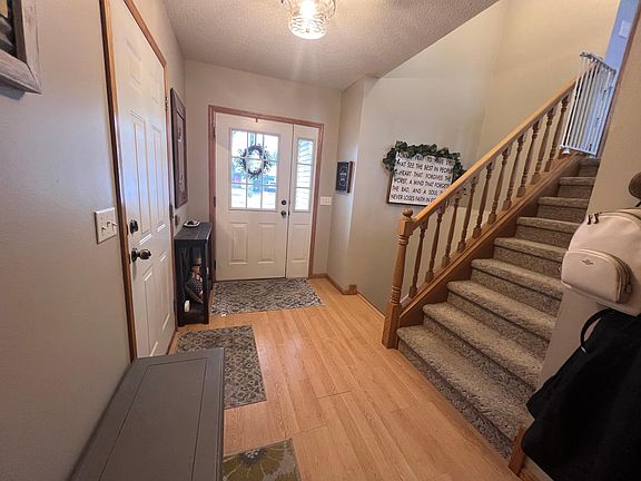 Great home in a great location! Split foyer home - and yes, it has a foyer to welcome your guests, or take care of wraps and boots! Open floor plan on the upper level makes it easy for entertaining family, friends and neighbors. The home offers 4 bedrooms, 2 baths, nice gathering spaces on both levels, and ample storage. The backyard hosts a large deck and cement patio, plus the fenced yard gives added privacy and safety for kids, pets, play and get-togethers. Let's visit this home that's just a quick walk from downtown, the middle school and parks!