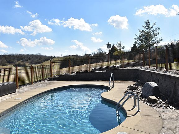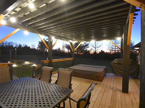 Nestled on 13.9 acres of serene landscape, this enchanting log home graces a gentle hill with captivating views of the surrounding countryside. Meticulously cared for and thoughtfully updated, this rustic abode offers an inviting retreat for those seeking both comfort and natural beauty. Boasting three bedrooms and three baths, including a luxurious primary suite, the home features an expansive great room that seamlessly blends with the kitchen and dining area. Warmth emanates from the gas log fireplace on the main floor while a cozy wood stove beckons from the basement below. Step outside to discover a paradise of outdoor living, complete with a sprawling multilevel deck adorned with a charming pergola, enveloping the home on three sides. A sunken hot tub invites relaxation while an inviting inground pool offers refreshment on warm summer days. Recent updates abound, including a new hot tub, furnace, fence around the pool, and refinishing of the logs, ensuring modern comfort and convenience. With its idyllic setting and myriad amenities, this log home promises an unparalleled retreat for those seeking a harmonious blend of rustic elegance and contemporary comfort.