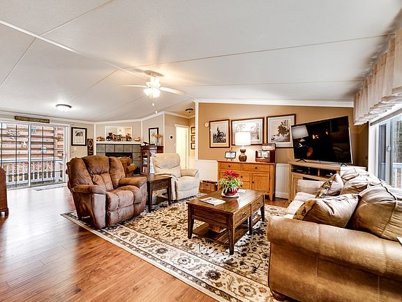WAS $253,000, NOW $240,000! This GORGEOUS home in 55+ Meadowland Park can be yours! No expensive lot rent here - Meadowland Park features retirement living at an affordable price & you own the land! Beautiful landscaping waiting to burst forth in the spring & rockwork throughout the yard. Fabulous expansive deck for enjoying the outdoors & mountain view. Plus a new hydraulic lift for easy access or heavy lifting! The lovely open floor plan allows for different configurations of living or dining spaces & boasts pretty laminate flooring, crown molding & a cozy natural gas fireplace. The large country kitchen is a dream & features tons of cabinet/counter space, plus the adjoining laundry room has additional pantry storage. Primary bedroom is a spacious retreat! Two closets, en suite bath w/dual vanity, step-in shower w/new doors & vinyl plank flooring. Across the home are 2 more bedrooms, perfect for guests or office space & updated guest bath w/new shower doors & vinyl plank flooring. And let's not forget the garage, carport AND adorable shed! Loads of storage & great location w/easy access to NC & GA. New HVAC in 2024, well-maintained, freshly painted & move-in ready!