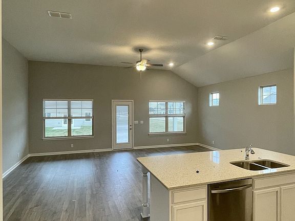 This home Plan (1705 Elevation GHI) features a four sides brick exterior, a large island in the kitchen, main level living with all bedrooms downstairs, . Inside you will find laminate flooring in the great room and kitchen as well as granite countertops in the kitchen. ALL stainless steel kitchen appliances and blinds are INCLUDED!!