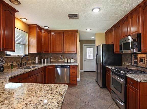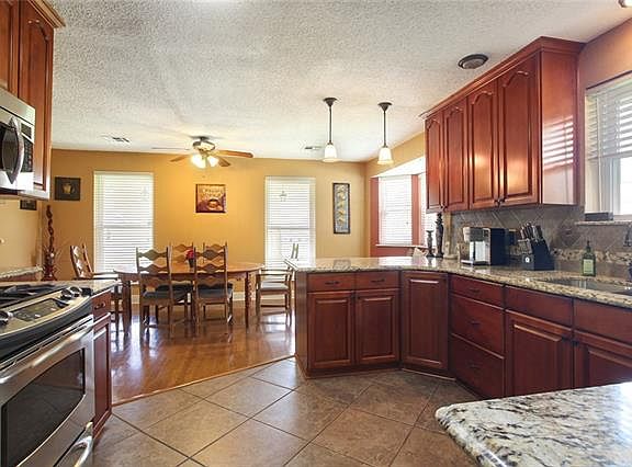 The 4 bed/3bath has a bonus room and 2 master bedrooms. The kitchen has been beautifully updated with granite, custom cabinets, ss appliances & new tile flooring. MB flooring recently updated with vinyl wood look, 22 new dbl ins windows , newly covered patio with insulated cover and gorgeous stamped concrete. Fenced in rear yard with multiple accesses. Mimosa school district, x-flood zone.