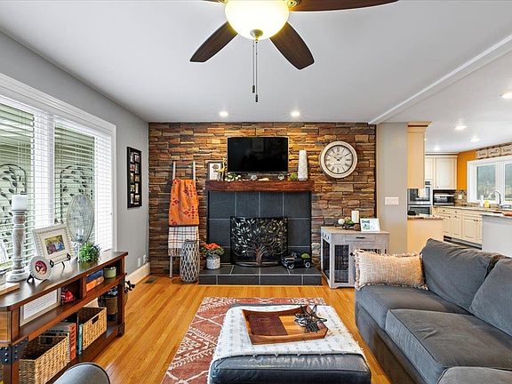 What a gem! Totally renovated plus primary suite addition. Decorator touches and quality finishes throughout. Primary bedroom features luxury shower. Composite deck overlooks large flat yard. Unfinished basement provides hobby space, storage, indoor play area. Attached single garage plus 28x18 single detached garage with shelving. Replacement windows throughout. Generator equipped, in ground 320 gallon propane tank. Storage shed.