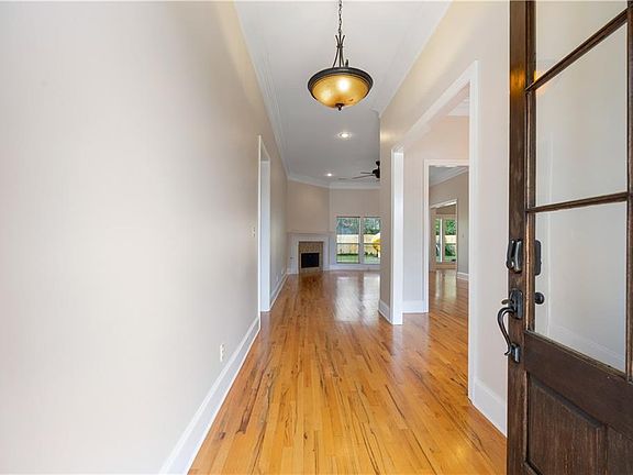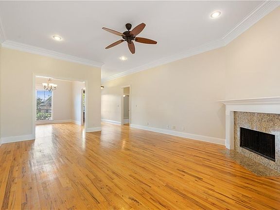 New Price for this Great home on Cul De Sac. This 4 bedroom Split floor plan also has a Bonus Room with built-ins that can be used as a home office/rec room/media room, or convert the built-ins to a closet for a 5th bedroom, you decide. Kitchen has stainless appliances, granite counter tops, custom cabinets. Gas Fireplace. Wood floors in living area, dining area and primary bedroom. Brand new carpet in 3 bedrooms & bonus room. Freshly painted throughout. Plenty of crown molding. Fenced yard backs to green space. Community pool, playground, walking paths, fishing ponds. Flood Zone X. HOA includes trash pick up.