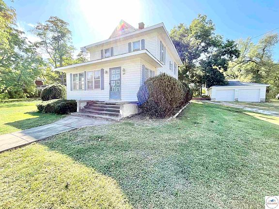 This lovely home sits on a half-acre lot with a huge garage and a shop with a loft. Enter into an enclosed sunporch with plenty of natural light. Walk through the living room that features a fireplace and stained-glass window. There are soaring ceilings and hardwood floors throughout the main level. You will also find a formal dining room with a large window, a kitchen with plenty of counter space, the laundry room and half bath. Upstairs are 3 bedrooms and a full bathroom. The basement is unfinished with plenty of storage. You are going to love the charm! Small town living is calling your name! Call today to check this home out! Sold as-is meaning seller will make no repairs or corrections if any may be needed.