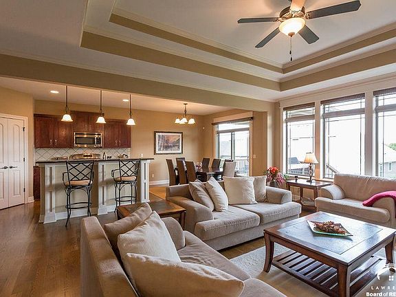 VERY GENTLY LIVED IN. Owners make OCCASIONAL visits. PRISTINE CONDITION. One level with daylight basement. Ranch home with open floor plan, master bedroom, 2nd bedroom, full bathroom, and utility on main level. 2 bedrooms, 2 bathrooms, wet bar, and large family area in finished basement. Rich hardwood floors, granite counters throughout, pantry, stainless steel appliances and gas range. Large master shower and walk-in. Abundant storage. Covered porch. Located in Northwest Lawrence, FREESTATE High School.