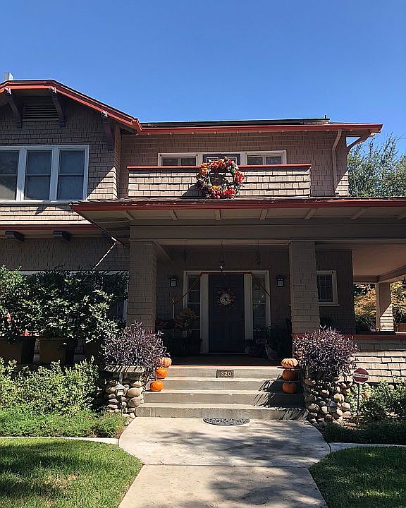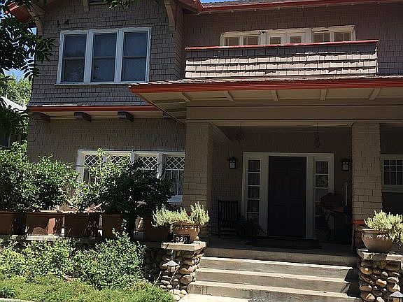 On the local register of Historic homes this Craftsman style Bungalow is the Porter-Bernard home circa 1908. Charm & character abound w/gleaming hardwood floors, period lighting, crown molding, stained glass windows, wainscoting, French doors & generous sized rooms. Kitchen features stainless appliances w/gas stove top, Thermador ovens, subzero refrigerator/freezer, butler panty & informal eating area. Owner's bath redone in 2020 has a large shower & antique style cabinet w/double sinks. Owned solar, electrical & plumbing updated in the 1990's, gas log fireplaces in both living & family rms, surround sound, convenient upstairs laundry, refurbished balcony decking, 2 HVAC units, 2 newer water heaters, approx 400 +/- sq ft usable attic storage (could be made into more living space) , large back yard w/Pergola, fountain, 8 X 10 storage shed & newer fencing, gated parking pad & sprinklers front & back add to the enjoyment you will experience for years to come. Property is zoned for mixed use.