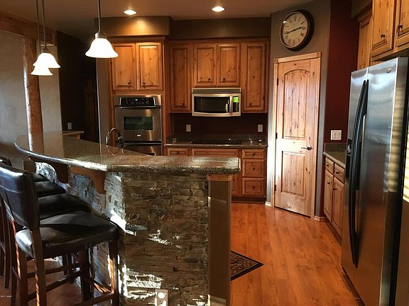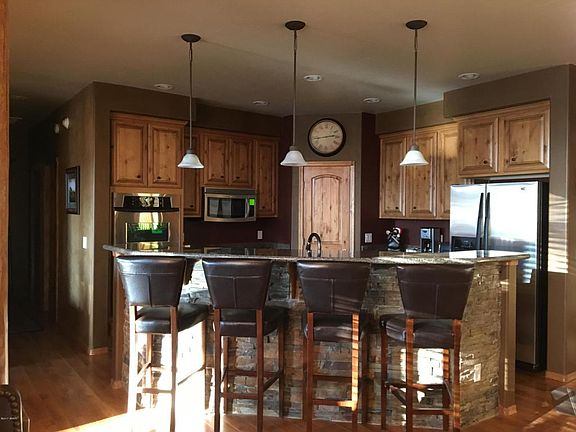 In the beautiful golf gated community of Bison Retreat is a custom home on the 13th Fairway. From the entry you have the high ceilings w/ a large open loft. The master retreat is on the main floor with custom closet and door to the private patio. Wall of windows in the great room and floor to ceiling stone fireplace is just one of many beautiful custom features. The open dining room makes family dinners and entertaining more inviting. The wall of sliding doors will further the entertainment to the low maintenance Trex deck with fireplace for hours of outdoor fun. The towering ponderosa pines encompass the home and backyard with even a horseshoe pit. There are 2 more bedrooms on the main level with gorgeous bath. The fourth bedroom has private bath and balcony. So much to mention.