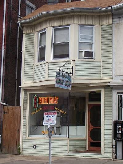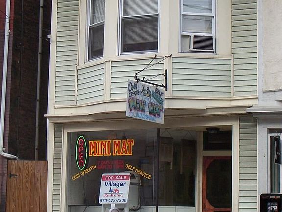 Commercial property with a lot to offer: established 1st fl laundromat including washers, dryers, soap dispenser, change machine; rented 2nd fl apartment (1 bdr, bath, kitchen, LR, dining or 2nd bdrm) in good shape.