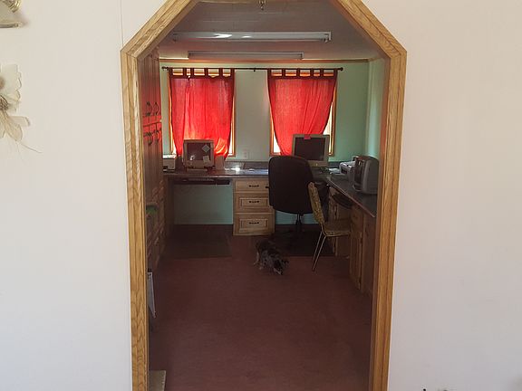 Dont let the exterior of this place fool you from the gem awaiting inside! Nice corner lot in Moorcroft. Great Starter home/ investment/business property. Home has been remodeled. Very nice kitchen with ss appliances! Currently set up for in house business with one room set up with desks and shelving. No zoning in Moorcroft. 1 garden shed, and one hobby shed with elec/heat. Bank owned.