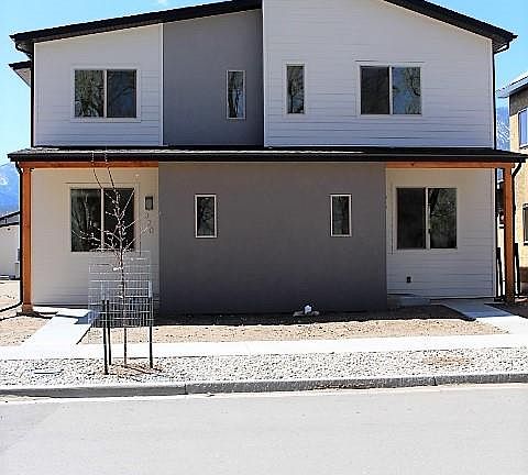 Brand New 1841 sf, 3 bed/2.5 bath new mountain contemporary townhome. Open layout on the main floor with the kitchen, dining area and great room and a cozy gas fireplace. High ceilings throughout home make it feel extra spacious. Well thought out with the master bedroom, master bath and powder room on the first level and two additional bedrooms on the second floor and an office/ bonus room with fantastic mountain views. High-end finishes include white oak hard-wood flooring, custom tile bathrooms, carpet in the bedrooms and solid quartz countertops in kitchen. 1-car detached garage for extra storage and convenience of parking. Small yard for outdoor entertaining. Located at the conflux of the Arkansas River and Little Ark River, Two Rivers offers incredible access to abundant recreational opportunities, a developing commercial area , charming riverside park and gazebo - all within a mile of historic downtown Salida- accessed easily by new bike/walking path. Live the Salida Lifestyle!