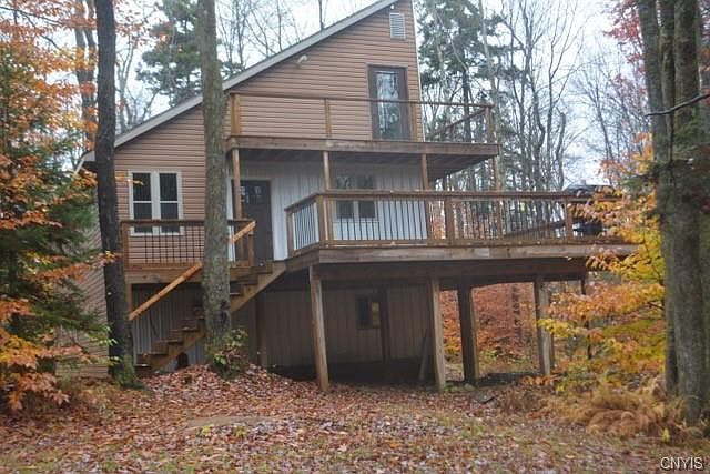 Calling all DIYers- You've found your dream get away! This partially finished custom built 3 bedroom camp is just waiting for the last little bit of TLC to become your perfectly customized get away. Located on local snow mobile trails it can potentially be used year round! There is 1 full bath and 2 of the bedrooms each have their own half bath! Downstairs has an open floor plan with plenty of extra room to sleep everyone else. A large unfinished basement has the potential to become another bedroom, or an extra living room or game room! Go completely off grid with a drilled well, brand new septic and the property comes with a generator! Almost 1100 sq foot basement with walk out, and exterior deck is 600 sq feet. Whole building measures 2400 sq ft interior (including basement). Call for your showing today! **Please note the property is only accessible in the winter by snow mobile**.