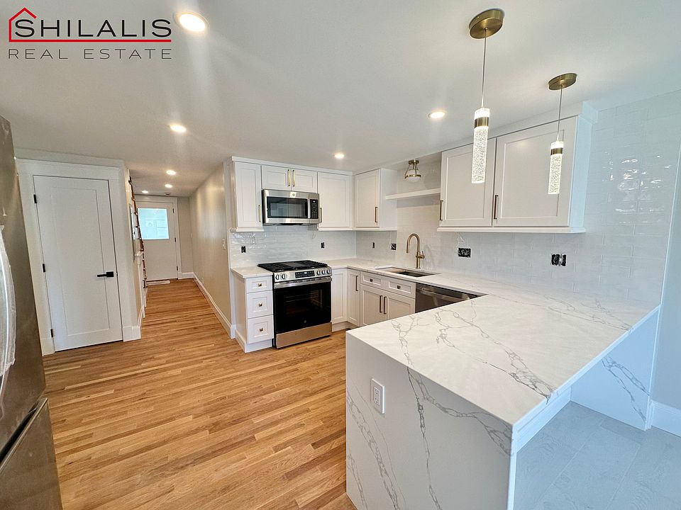WATERTOWN - TOWNHOUSE WITH GARAGE - Privacy - FREE LAUNDRY IN UNIT. Brand new renovation townhouse/duplex style home with no one above or below you. 2 Living levels. Brand new kitchen and bathroom. Hardwood floors have been refinished and fresh paint throughout entire unit. New windows. Fireplace in large living room. Separate dining area off kitchen. Lots of natural light throughout. Gas heat and Central AC! Awesome 2-car garage. Prime Watertown location close to Belmont and Waltham. Walk to Waverley Square in Belmont. Easy commute to Cambridge and Boston. Pictures of living spaces are before work was started and kitchen picture is of the other unit in the house, to show the finishes. Bathroom is current - glass doors to be installed. Work will be complete by September 1. Contact Morgan.