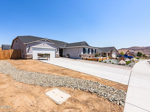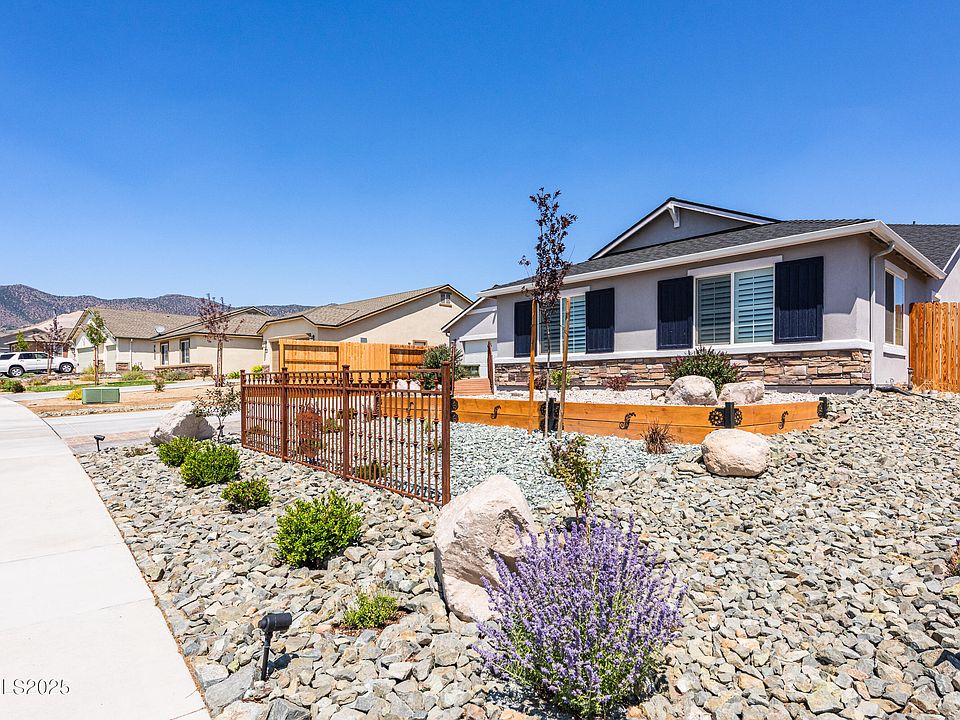 Stunning Original Owner & Sought- After NextGen Home in Dayton's Copper Canyon Estates with Great RV Access/Parking - Built in 2021, this property isn't just a house; it's "two homes under one roof", featuring the highly desirable Next Generation (NextGen) design. The main residence welcomes you with a bright, open-concept floor plan, creating a seamless flow perfect for entertaining and daily life. The heart of the home is the beautiful kitchen, boasting granite countertops, breakfast bar, and ample space for all your cooking adventures. The property offers an attached private suite, offering ultimate flexibility for multi-generational families, a deluxe guest retreat, or a private home office. This "home within a home" features: a separate/private entrance, a comfortable living room and a well-appointed kitchenette with granite counters, a spacious bedroom and a full bathroom, and its own private laundry, complete with an included stackable washer/dryer. Step outside to appreciate the upgrades. The uniquely designed, water-wise xeriscape front yard offers stunning curb appeal with minimal upkeep. The extended driveway with "drive on" pavers leads to a threee car garage that is equipped with four 220V outlets. The entire property sits on a desirable level lot with a level driveway. The backyard is a blank canvas, perfectly leveled with dirt and decomposed granite, ready for you to design your personal oasis. Functionality is paramount, with an expansive 14 foot rear gate providing easy access from the rear common area. Bring all your toys! There is spacious and dedicated RV parking, supplemented by a newer 12'x 16' TUFF SHED with built-in storage racks for all your gear. Additional - High-Value Features Include: Two Refrigerators Included: One in the main kitchen and one in the NextGen suite. - Comfort & Style: Ceiling fans in every bedroom and elegant plantation shutters in select rooms. - Practical Upgrades: Rain gutters have been installed for proper drainage and protection. - Modern Security: A Ring security doorbell is included for your peace of mind. This is a rare opportunity to own a nearly new home that perfectly blends luxury, convenience, and unparalleled versatility. Don't miss your chance to make this exceptional property your own. Schedule your private tour today!