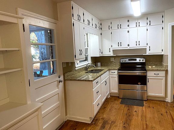 Three bedroom two bathroom full brick ranch. New heating and air, 5 year old roof on house and storage building. New driveway poured two years ago. Hardwoods in living room hall all bedrooms and pine floors kitchen. Built in book cases and storage, gas fireplace. Original vintage tile in bathroom. Water resistant flooring in new bathroom laundry room. Aprox one acre lot with three sides fenced back yard and screen porch.