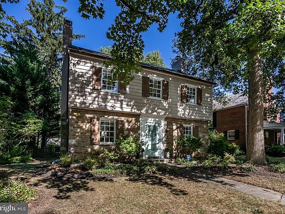 This classic Homeland stone Colonial sits on a lovely quiet street with huge shade trees and a pancake flat fenced rear yard. 3 BR, 2 full and 2 half-baths. This sunny and bright home features hardwood floors throughout and a galley kitchen with granite counters. The charming stone-floored screened porch off the living room provides a perfect place for relaxing. The living room has a wood-burning fireplace and a half bath. The dining room has built-in china cabinets and a chair rail. The huge master bedroom has an en suite updated bath. The other 2 bedrooms share an updated hall bath. Climb the stairs from the second bedroom to the finished attic space. Use your imagination- call it Bedroom 4, a home office, or wonderful play space! The finished lower level has a second wood-burning fireplace, carpeting, and classic Baltimore knotty pine paneling. Central air, a dry basement, and a single car garage complete the package. Freshly painted and updated throughout, this home is truly move-in ready.