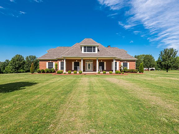 Tranquil Living at its BEST!! This home is a gorgeous find in Coldwater, situated on 12 acres, with plenty of living and storage space inside and out. You will never want to leave. Enjoy drinking your coffee on the beautiful front porch as the sun rises, This home welcomes you with a two story foyer that leads to an open floor plan. The family room has a wood burning fireplace with blower. Natural light streams through the many windows downstairs. The kitchen has new granite counter tops, a breakfast bar, 5 burner gas cook top, double ovens,stainless appliances, lots of beautiful cabinets, 2 pantries, and double stainless refrigerators. Additionally downstairs offers a spacious master bedroom,with updated salon bath with new granite vanity top,large walk in shower, and his and her