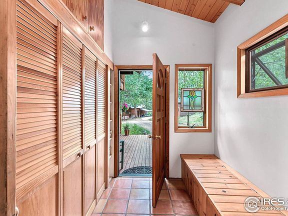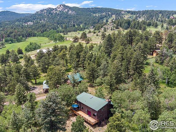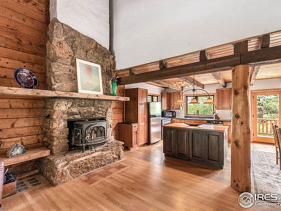 This terrific log home is surrounded by aspen and evergreens, giving you summer shade or solar gain when you need it as well as privacy. Ground level has open floor plan, oak floors and vaulted fir ceilings. Large stone fireplace with efficient Jotul wood burning stove provides enough heat to warm both floors. Remodeled kitchen features cherry cabinets, soapstone and cherry countertops and a copper sink. Second floor has two large bedrooms with vaulted ceilings. Bright master bedroom with private deck has attached office suite, or use it as a large walk-in dressing room. Basement includes a finished bedroom and nook with additional unfinished space that can be converted. Three large decks with log railings have fantastic views. Close to Eldora Ski resort, hiking trails along Magnolia Rd. yet only 12 miles to Boulder on CTY and State maintained roads. Located on 2.63 usable acres with a pasture, small barn, and secure chicken coop. Large detached garage (2005) has extra attic storage.