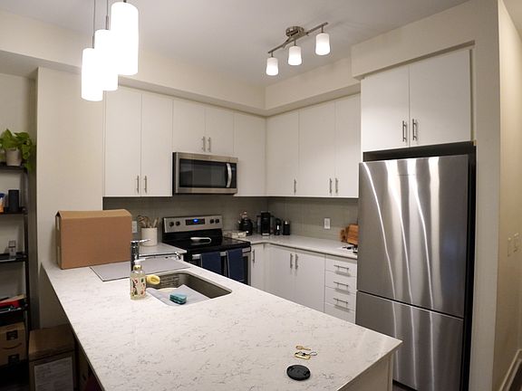 Welcome Home to 320 Plains Road East Aldershot, Burlington Located in the highly sought-after neighbourhood of Aldershot, this 1-bedroom plus den condo offers the perfect blend of comfort and convenience. Enjoy easy access to shopping, restaurants, public transit, and the GO Traineverything you need is just minutes away. Situated on the 2nd floor of a well-maintained mid-rise building, this unit includes one parking spot and a storage locker. The building also features visitor parking, a welcoming lobby lounge, a rooftop terrace, and a fitness room for your enjoyment. Inside, you'll find an open-concept layout with a spacious living room and sliding doors that lead to a private balconya peaceful spot to relax outdoors. The kitchen is equipped with stainless steel appliances, including a dishwasher, stone countertops, and a breakfast bar, ideal for casual dining or entertaining. The bedroom comfortably fits a queen-sized bed, and the 4-piece bathroom includes a full tub. The den is a perfect space for a home office or reading nook, and the added convenience of in-suite laundry completes the unit. $2195 Plus utilites. Includes storage and 1 parking space