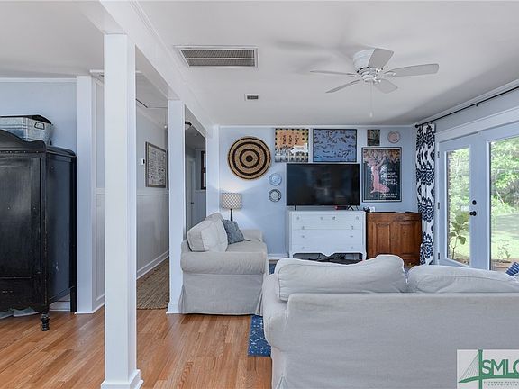 Make your homestead dreams a reality! This classic brick ranch is located on a quiet dirt road, 5 miles from I-16. Large mature trees are located in the front and back of the home providing ample shade and privacy from the road. The covered carport on the right side of the home leads directly into the open concept kitchen. Full size laundry room is off of the kitchen on the right. Kitchen opens up to the living and dining room making it great for entertaining! French doors on the back of the home provide incredible views of the wonderful Oak tree and acreage behind the home. One full and one half bath are located off of the hallway and three bedrooms. Owner improvements include: new flooring, HVAC, kitchen, bathroom, well pump, french doors, interior paint, laundry room, light fixtures, new chicken coop that has not been used, tractor shed, fencing, deer proof garden and tree house. Walking trails run through the woods on the back edge of property.