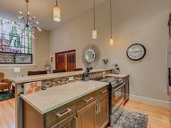 Simply magnificent! One of five modern lofts in this century old church. In the heart of Bellevue walk to shops, boutiques, restaurants, and even downtown to Reds or Bengals games. 52 ft of soaring beautiful ceilings and amazing original features throughout. Gleaming hardwood floors, wrought iron railings, soft close cabinets, tons of storage, one car garage, and off-street parking. The pictures do not show the beauty, peace, and warmth this home offers when you are inside.