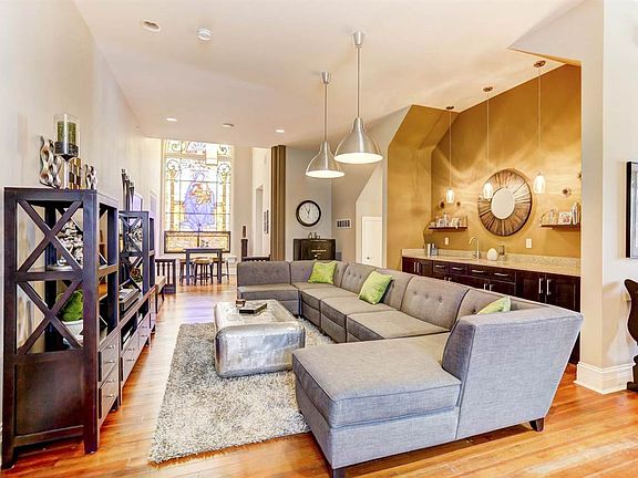 WOW! Truly unique condo in renovated Century Old Church! Almost 3,000 sq ft with original hardwood floors, abundance of stained glass windows and TWO garage spaces! This unit features TWO master bedroom suites, custom railings, built-in original cabinets/lockers in study, wet bar in living room, exposed brick, balcony overlook and a separate outdoor space. Walkable living at its finest.