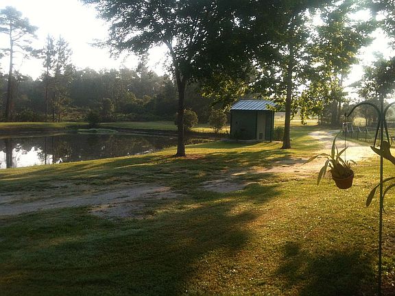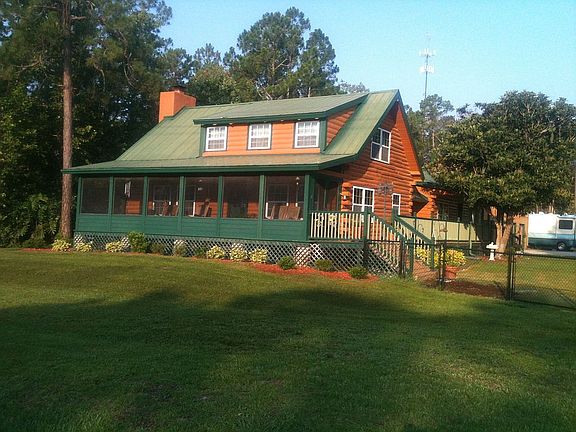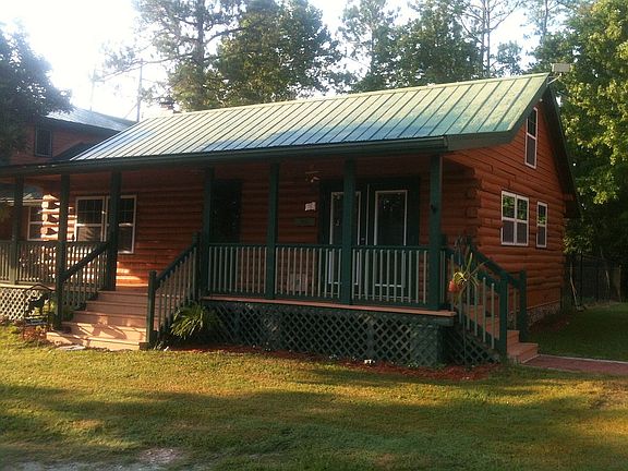Unique custom built log cabin home on beautiful cleared 5 acre lot. Country retreat includes Spanish tile flooring, beautiful kitchen with new hard surface silestone countertops, oversize wood burning stone fireplace, large screened porch with hot-tub, newer metal roof install in 2004, 3 car garage with 1 bedroom 1 bathroom in-law suite above w/ kitchen. Pond is stocked with brim, catfish and bass. Plenty of room for the kids, animals and toys. Priced to sell! Potential short sale. Price & contract subject to 3rd party approval.