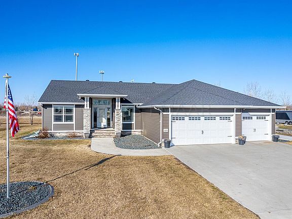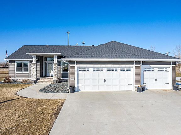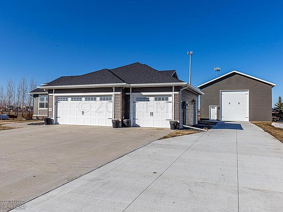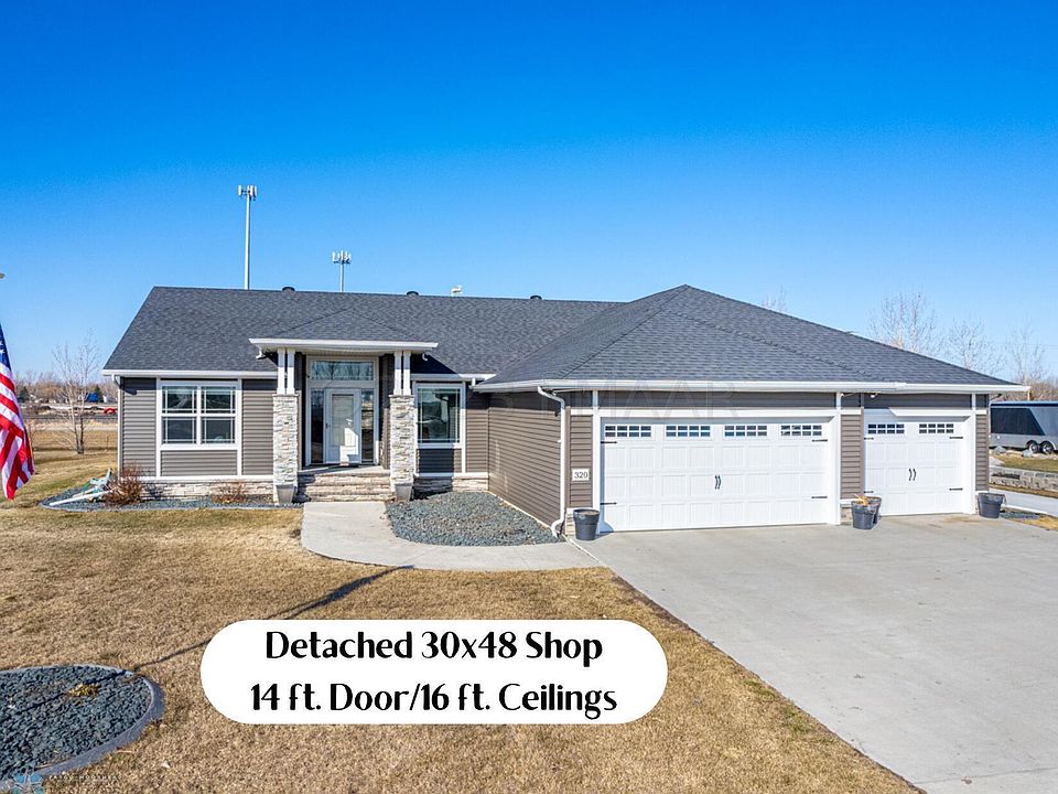 Looking for a home less than 10 minutes from Fargo, on over 1/2 acre, in a spread out, beautiful neighborhood? Looking for a newer, quality built, 5 bed/3bath home, with low specials? Looking for a shop for your RV or all your toys so you can get rid of your high storage unit payment? This 2015 Heritage built rambler with 3 attached stalls and a 30X48 detached shop is it!. This home has an extensive list of upgrades (see docs) including vaulted ceilings, 2 fireplaces, main floor laundry, w/in tile shower, HUGE entertaining basement with wet bar and 2 seating peninsulas and heated bath, bar and garage floors. The exterior has a beautiful patio and landscaping, sprinkler system, and the shop has a 14' door/ 16' walls and concrete! (whistle free train zone-Structures not in flood plain)