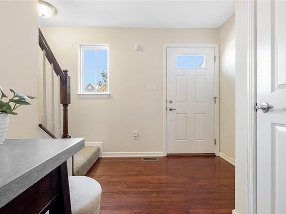 This charming 3-bedroom, 2.5-bath home, built in 2015, is located in a newer community in Moon Township, just 10 minutes from the airport, offering both convenience and comfort. On the main level, you'll find a well-appointed kitchen, large living area, and a formal dining space. The second floor is home to the generously sized bedrooms, including a master suite with an en-suite bath and walk-in closet. There is also a convenient second-floor laundry space! The real showstopper is the huge finished basement. This area includes a custom bar, ideal for hosting gatherings, an office perfect for remote work or study, and ample storage space. Outside, the flat yard offers plenty of room for outdoor activities, and the composite deck is a low-maintenance space for relaxing or grilling with family and friends. This home offers a perfect blend of modern amenities, space, and an excellent location, making it an ideal choice for those seeking both comfort and convenience.