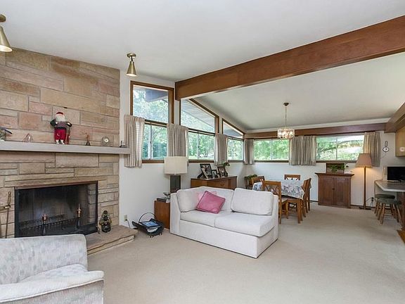 Original Mid-century modern ranch that has had the same owner for over 50 years. Nice, open living/kitchen and dining areas with vaulted ceilings and lots of great windows. 3 good sized bedrooms plus an office/den on main level and a blank slate in the lower level to create your own family room and add some additional living space. 2 fireplaces, one in the living room and the other in the future rec room area and hardwood floors. There is so much great potential in this popular design that you won't want to miss your opportunity to add your personal touches to this architecturally appealing home. Beautifully maintained by the current owner and just waiting for your personal touch.