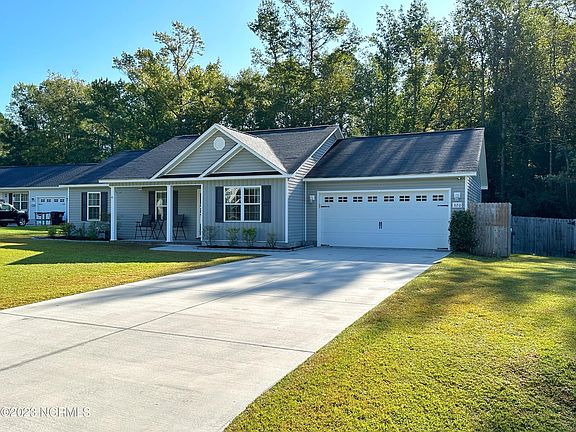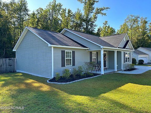 Welcome to the beautiful subdivision of Woodbury Farms. 10 miles to MCB Camp Lejeune's Wilson gate and 11miles to Western Blvd/Hwy 17 intersection, the center of Jacksonville's shopping & dining area. This beautiful home has 3 bedrooms and 2 bathrooms, approx. 1312 heated square feet. A cozy front porch welcomes you home and leads into a quaint but spacious foyer. At the center of the home is an extra-large living area that includes vaulted ceilings and beautiful wood flooring. The kitchen with bar and dining areas are perfect for entertaining. Off the kitchen is a large laundry/mud room that has plenty of storage and access to the garage. The oversized 2 car garage has additional space with a workbench.  The master bedroom comes with a ceiling fan and 2 closets, one being a walk-in closet. The master bath features a double vanity and shower/ tub combo. Bedrooms 2 & 3 are both spacious with double door closets. Enjoy a great space for grilling and entertaining guests on the patio. Toast marshmallows on cool Autumn evenings by the stone firepit. Make your appointment today to see this fabulous home.