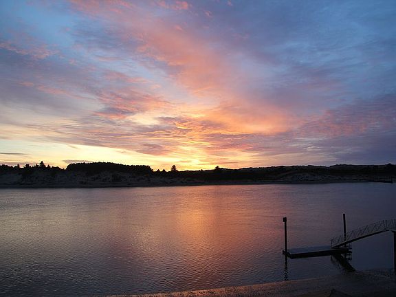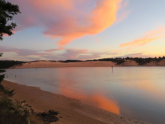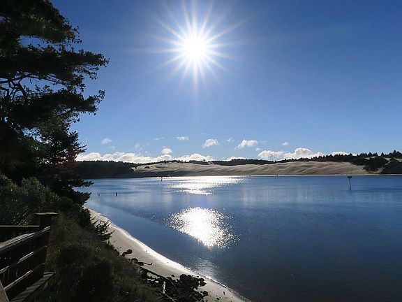 Panoramic River & Dune Views. Riverfront Home, Stairs to Sandy Beach, Expansive Deck To Enjoy Spectacular Sunsets. Excellent Location Across From Peace Harbor Hospital. Wall of Windows, Vaulted Ceiling-Open Floor Plan. 3 Bed Rooms. Single Garage Plus Carport. Master Upstairs & Downstairs. 1876 Total Sq Ft Including 1120 Sq Ft Main Level And 756 Sq Ft Lower Level.