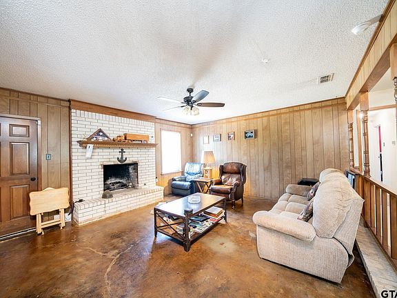 Well maintained home in great Sabine ISD neighborhood! Semi open floorplan is great for entertaining & family. Spacious living room with fireplace, that opens to dining area that connects to the kitchen with breakfast bar, lots of cabinetry & storage options, & huge pantry. Primary bedroom offers two walk in closets with updated bathroom. Spare bedrooms both offer large closets. Laundry room has additional storage. Garage also offers additional storage room/space. Covered outdoor patio that looks out to yard & pool with new liner. Storage building & dog kennel all on over half an acre. Roof is 5 years old.