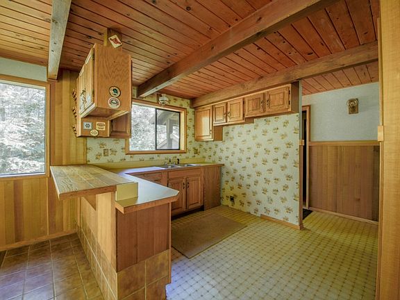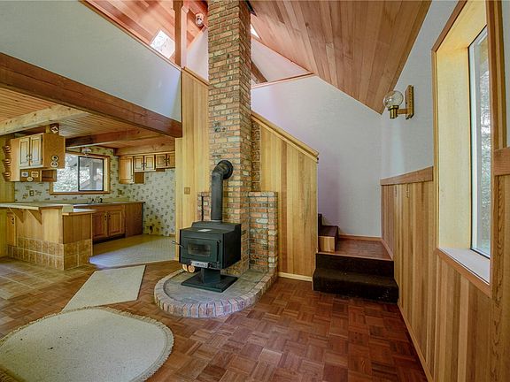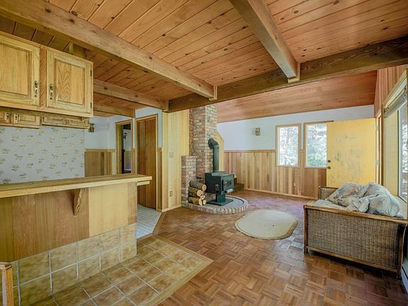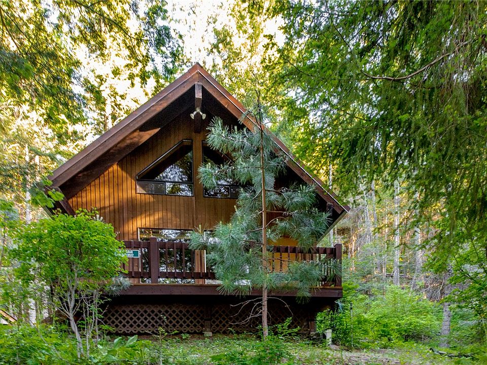 Nestled in the trees this immaculate cabin features beautiful wood & tile work with vaulted ceilings, exposed beams & a light filled interior on a secluded 1.24 acre lot. Finishing touches include cedar wrapped walls, brick chimney & oak flooring. Open kitchen with a walk-in pantry, eating bar & W/D hook-up. Master on the main w/loft upstairs, perfect for overnight guests. Enjoy BBQ's on the spacious deck & access to the community pool/clubhouse and ride on miles of trails from your door.