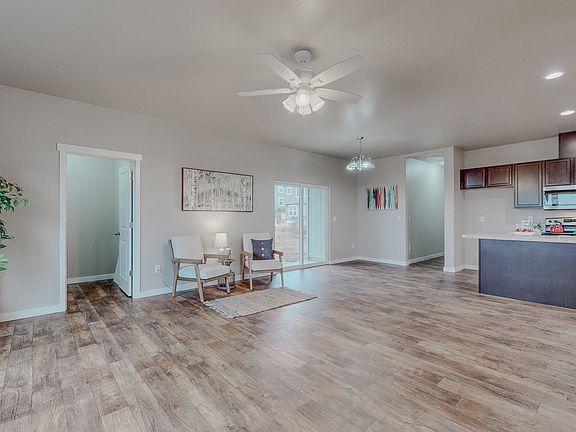 BRAND NEW home with Large kitchen with a Cozy Feel! This 3 bedroom, 2 bath home features an open concept great room with nice windows to watch the sunset! The primary suite has both a walk-in-closet and an ensuite bathroom. The home sits up higher with a view of the area and currently is the last home on the street, situated on a corner lot. Plus the home comes with a covered back patio for BBQ's and entertaining, front yard landscaping and a 2 car garage with a garage door opener. Schedule your showing today!