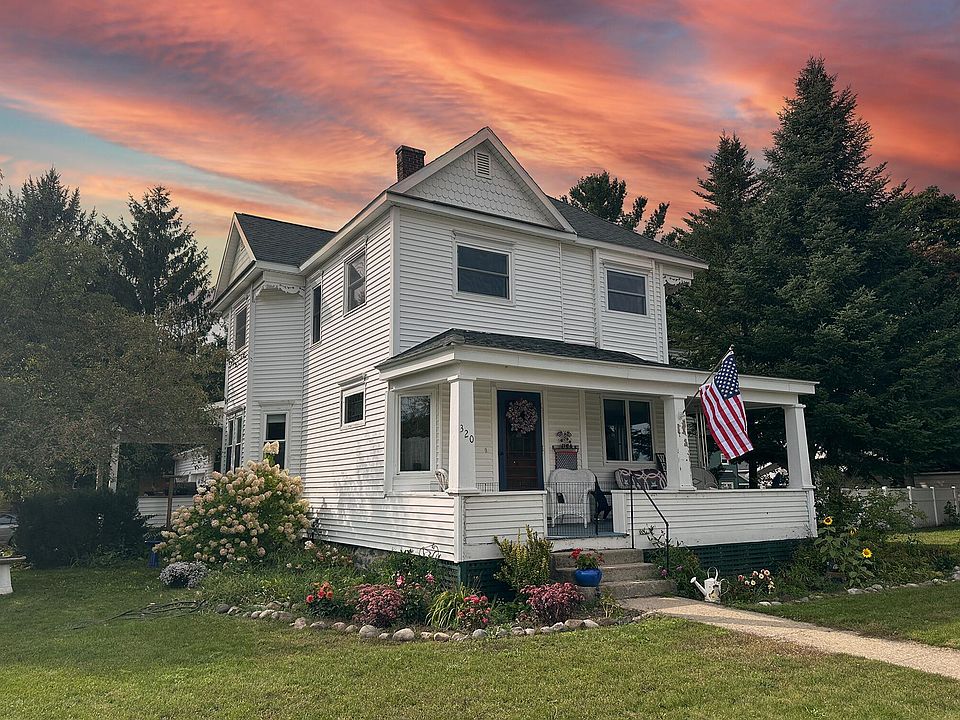 RARE opportunity to own this charming and historic Otsego County home. If you appreciate unique architecture and want to live close to Gaylord community schools and the downtown area this is the home for you. Set on an oversized corner lot and zoned R-2. The four-bedroom, three-bathroom home has many attractive features, including original maple floors, crown molding, high ceilings, a stone fireplace, a walk-in closet, granite countertops, stainless steel appliances, and a clawfoot tub. The main floor has a possibility of a fifth ensuite bedroom. The property also has a two-car garage, two covered porches, a large fenced-in backyard, and well-maintained flower beds. If you are looking for a charming home in downtown Gaylord, don't miss this opportunity to make it yours.