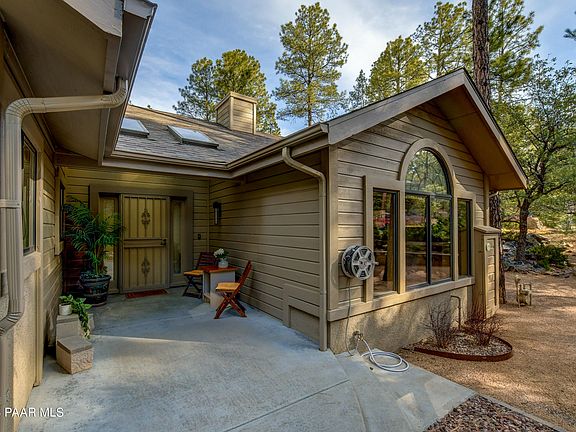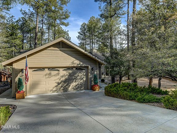 Meticulously maintained Single Level Home in the highly desirable Hidden Valley Ranch just 5 minutes from downtown Prescott. Vaulted ceilings and an open floor plan give this home a plethora of light and Views to the Ponderosa Pine forest that surrounds it. Luxury vinyl plank and carpet flooring, custom cabinets, stainless appliances, Quartz countertops, intelligent kitchen faucet, breakfast nook, Great Room fireplace, both covered and open deck and a large workshop/utility room and storage below. Oversized 21 x 25 garage with storage cabinets. Upgrades galore over the last 5 years. HOA Amenities include remodeled/new, Clubhouse, outdoor pool and tennis and pickleball courts.