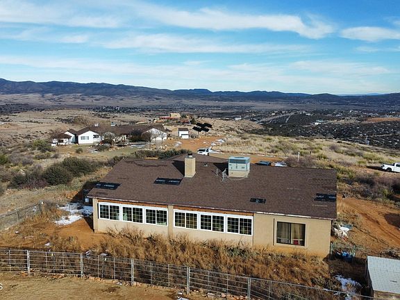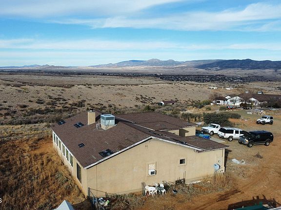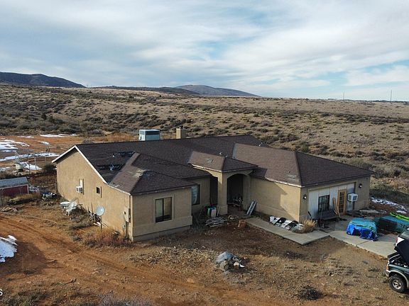 Fix-up/Handyman special. This home needs work, however, was built in 2005 and has really good ''bones''. Home is being sold AS-IS with no repairs being made by the seller. This sale includes 2 parcels for a total of 5.08 acres. Hauled water with a 2500 gal storage tank. This home can be beautiful again!! With some work and TLC it will be a gem. The 360 degree panoramic views are incredible. The property boarders State Trust Land. The garage is oversized and needs a garage door, and is currently the owners wood shop, but could easily be a functioning garage again. The bedrooms need flooring, the tile in other areas is nice. Kitchen has granite counters and knotty alder cabinets. Mare motel and all horse panels do not convey. The 3 stall pole barn does convey. Fenced backyard!