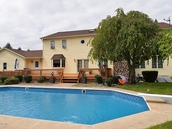 Pleasant 1.89 acre setting in a great location. Large two story family room with balcony and fireplace. Recent updates in kitchen. Expansive two tier deck overlooks 20x40 IG pool. Separate 20x24 outbuilding, can be used as pavillion or garage. Huge rec room in basement. A must see!