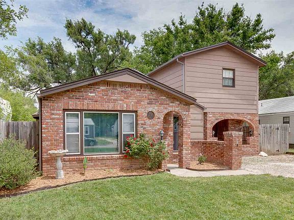 This cute and cozy 1 1/2 story brick home is waiting for you! Recently remodeled bathroom, fresh paint, and new carpet make moving in turn key! The main floor boasts two living rooms-- one with wood burning fireplace-- kitchen, bedroom, bathroom and laundry while half story has two bedrooms. Spacious backyard with covered patio perfectly shaded for the upcoming summer nights. Large, detached two car garage with 220 and alley access. Close to shopping, easy access to Kellogg and 235, your commute will be a breeze! Call today to schedule your private showing!