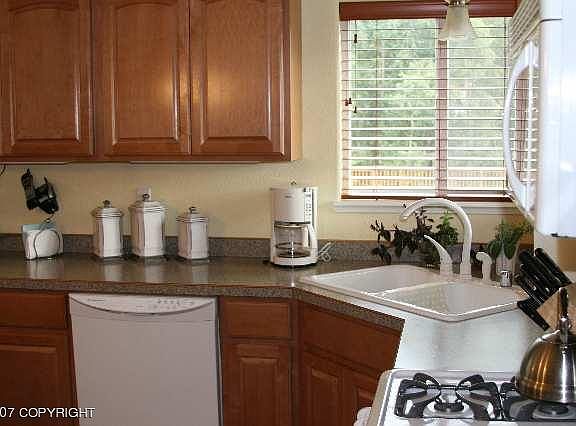 Wow! Very nice home, Den or 5th Bdrm onmain floor w/ full bath. Property backs to Wasilla Creek. Fenced back yard, play equipt. stays, immaculately kept.