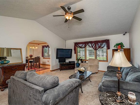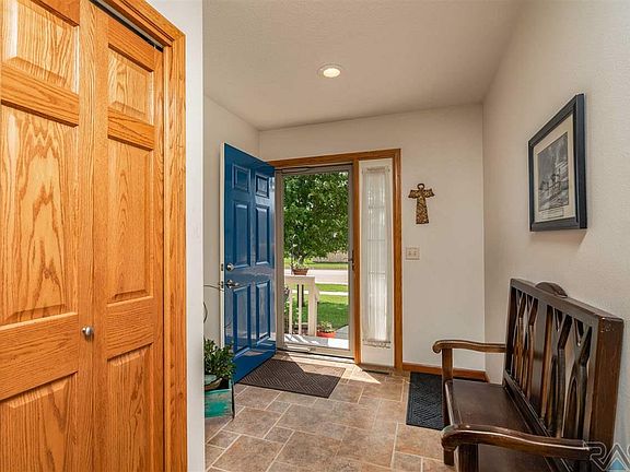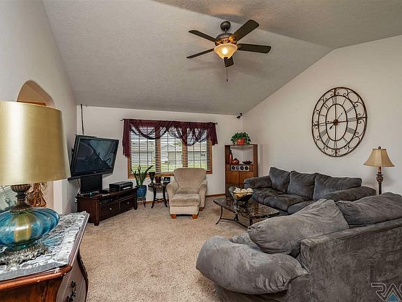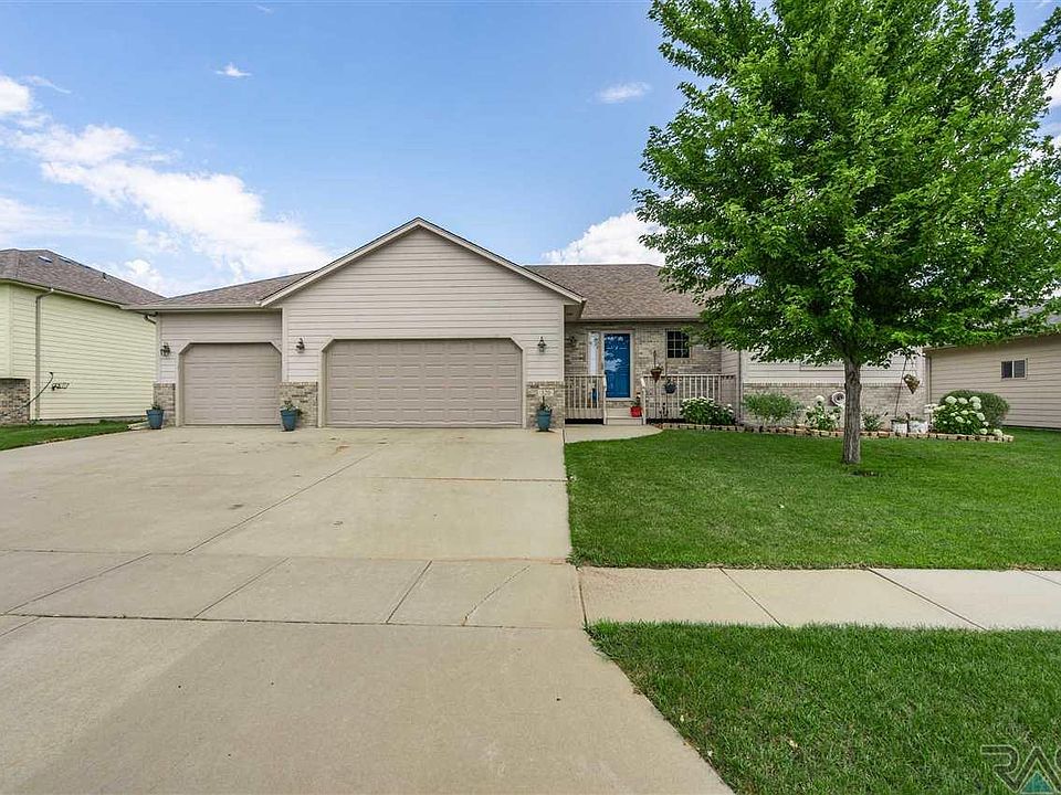 Lovely Tea, SD, Ranch style home located within walking distance of the schools. This Spacious 3 bedroom, 3 Full bath includes two additional unfinished rooms and fully finished basement family area. Featuring, Three stall, insulated garage, updated landscaping, and underground sprinkler system keep this home green and beautiful while creating the perfect location for grilling out on the covered patio while playing lawn games in the green, spacious backyard. This home sparkles with additional features of a worry free battery back-up sump pump, renovated custom shower with blue ocean panel and and rainfall shower head, and a welcoming blue door that accents the front porch's inviting charms. Landscaped front patio is home to white, blossoming hydrangea that await your tour today!