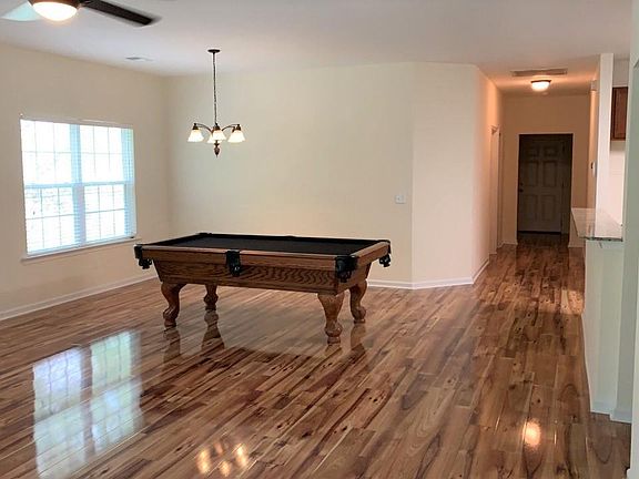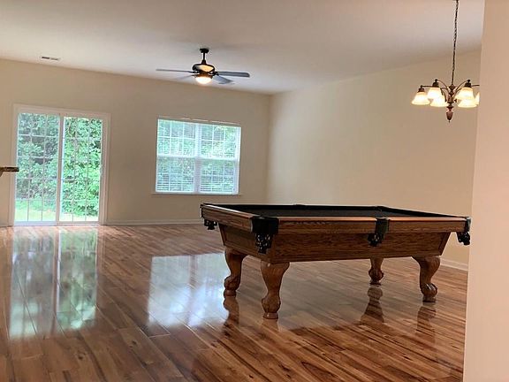 This beautiful single-family home located in an up-and-coming neighborhood on a cul-de-sac with shops and schools all around surrounded by woods and beautiful wildlife. The home features gleaming wood floors throughout. The kitchen and bathrooms all feature granite countertops. The large kitchen is open to the living and dining room and has a breakfast bar as well. The yard backs up to trees and the lot actually goes far back into the treed area as well for a very private setting. The master bathroom has dual vanities, extra cultured marble large shower with dual shower heads,and has direct access to the laundry room which is a nice feature. Home has tankless water heater for better efficiency and endless hot water! HVAC comes with Nest thermostat. Search for the address on youtube for a full walkthrough video!! Pool table included with the house unless you dont want it, then owner will get rid of it.